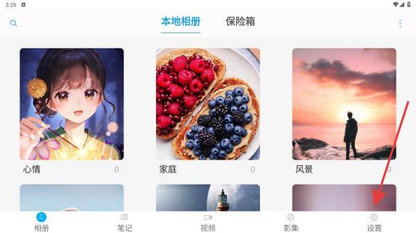 1、打開私密相冊APP,在首頁內(nèi)點擊右下角設置的功能圖標。