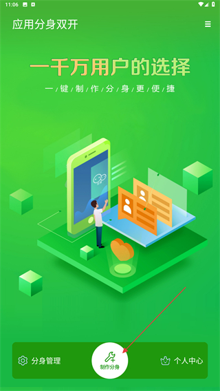 2、在首頁內(nèi) ,點(diǎn)擊制作分身的功能按鈕。