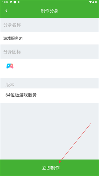 4、填寫分身名稱、版本后,點(diǎn)擊立即制作的按鈕即可。