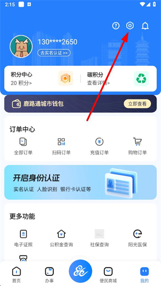 1、打開鹿路通APP,在我的頁(yè)面點(diǎn)擊右上角設(shè)置圖標(biāo)。