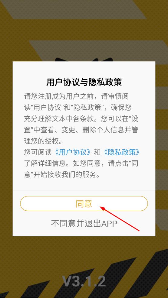 1、打開(kāi)交通365 App,出現(xiàn)用戶協(xié)議與隱私政策彈窗,閱讀后點(diǎn)擊同意按鈕。