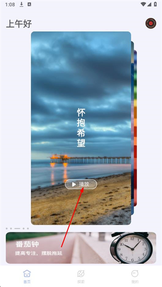 1、打開(kāi)助眠神器APP,在首頁(yè)中瀏覽各類(lèi)助眠音頻,找到想要播放的內(nèi)容,點(diǎn)擊播放按鈕。