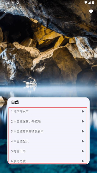 3、點(diǎn)擊播放界面的列表按鈕,可以查看并選擇其他自然類(lèi)助眠音頻,快速切換到想聽(tīng)的助眠聲音。