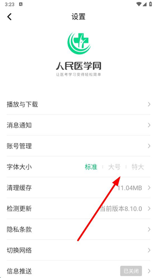 3、進(jìn)入設(shè)置頁面后,點(diǎn)擊字體大小選項(xiàng),可選擇不同字體大小。