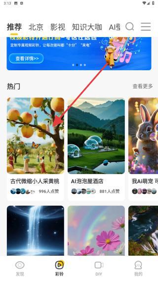 2、進(jìn)入到彩鈴的頁面內(nèi),在熱門下點(diǎn)擊你要設(shè)置的內(nèi)容。
