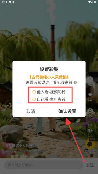 4、將彩鈴設(shè)置他人看或者自己看,選擇好后點(diǎn)擊確認(rèn)設(shè)置的按鈕即可完成。