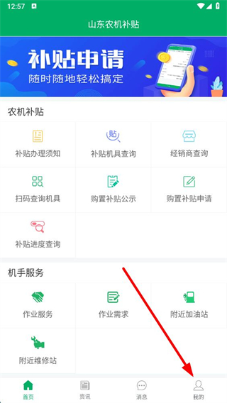 1、在山東農(nóng)機補貼app首頁點擊我的選項,進(jìn)入個人頁面。