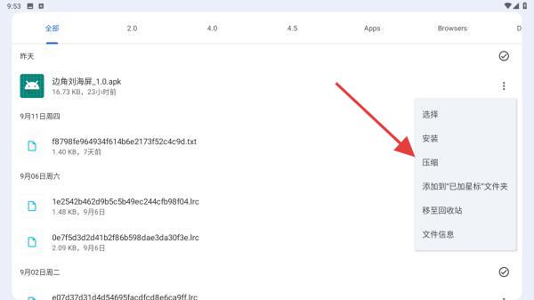 3、在彈出的菜單欄中,找到并點擊壓縮的功能按鈕。