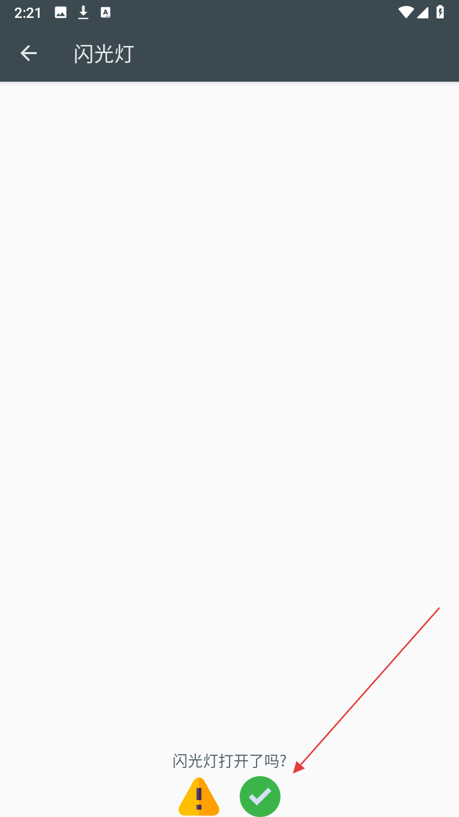 3、查看閃光燈是否正常亮起,若閃光燈打開,點擊界面底部綠色對勾按鈕,即可完成閃光燈測試。
