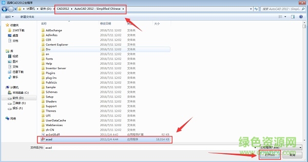 5.選擇啟動(dòng)文件,選擇2012版CAD文件夾,打開acad.exe。(注:第一次打開時(shí)需要選擇啟動(dòng)文件)。