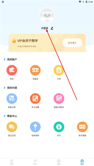 2、在我的頁面中,點擊上方的去登錄區(qū)域,進入登錄頁面。