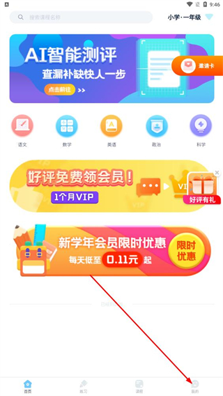 1、打開中小學同步課堂app,點擊底部導(dǎo)航欄中的我的選項。