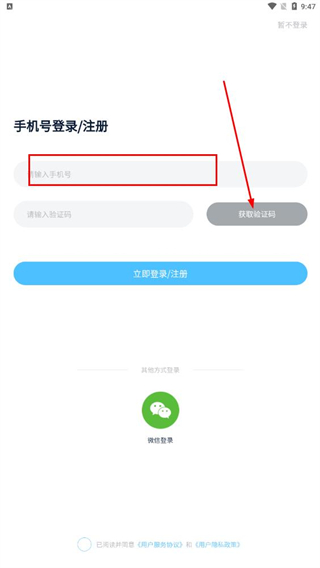 3、在登錄頁面,輸入需要登錄的手機號,并點擊獲取驗證碼。