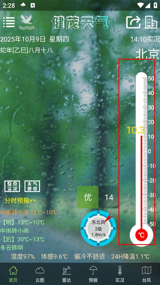健茂天氣還包含了實(shí)時(shí)氣象衛(wèi)星圖,晴天多云一目了然;