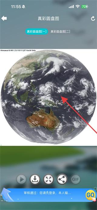 3、在云圖頁面即可查看真彩圓盤圖形式的云圖,了解氣象云圖信息。