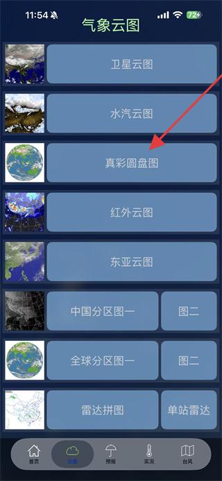 2、在氣象云圖頁面選擇云圖類型如真彩圓盤),進(jìn)入對應(yīng)云圖頁面。