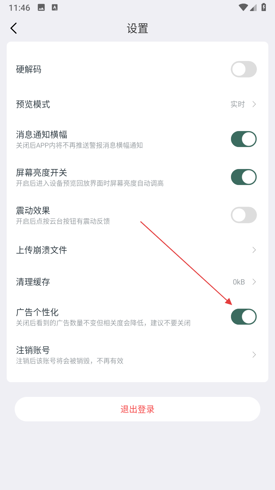 3、在設置界面中,找到廣告?zhèn)€性化選項,點擊其右側的綠色開關按鈕,將其關閉,完成廣告?zhèn)€性化的關閉操作。