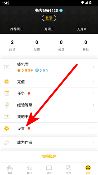1、在刺猬貓閱讀書城頁面,點擊底部我的選項,進入個人中心頁面。
