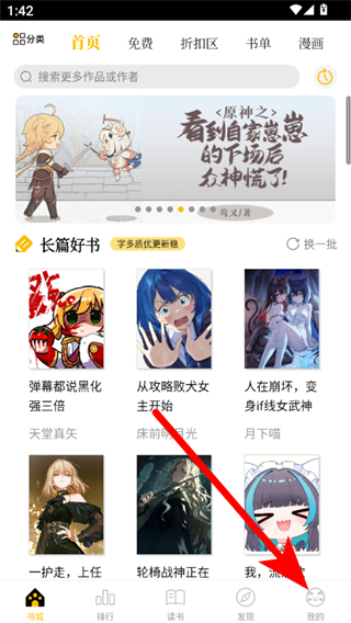 2、在免費頁面瀏覽主編推薦、熱書等分類下的免費小說,找到感興趣的作品。