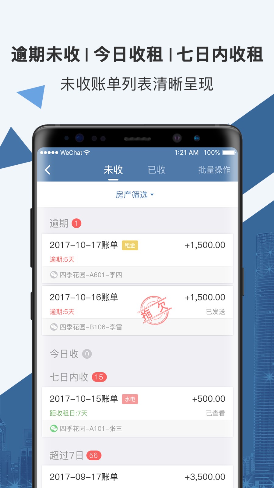 房利聚企業(yè)版是專為房東設(shè)計(jì)的一款管理軟件,主要針對大型房產(chǎn),用戶在線管理房間信息,房錢租戶狀態(tài)詳細(xì)顯示,通知群發(fā)方便快捷,賬單提醒及時(shí),歡迎下載!