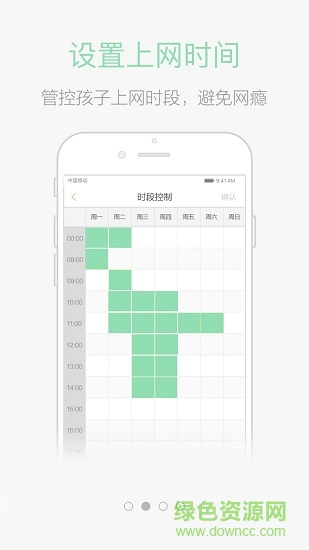1.在時(shí)間方面,可以設(shè)定孩子的上網(wǎng)時(shí)間,哪些時(shí)間段能上網(wǎng)哪些時(shí)間不能,綠網(wǎng)瀟湘APP以小時(shí)為單位細(xì)分到了每天。同時(shí),孩子可以制定自己的上網(wǎng)時(shí)間表,進(jìn)一步地培養(yǎng)孩子的自制力。