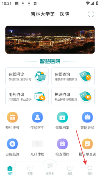 1、打開吉大一院智慧醫(yī)院APP,點擊底部導航欄中的我的選項。