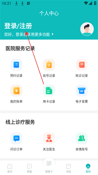2、在個人中心頁面里,點擊登錄/注冊區(qū)域。