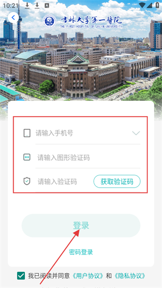 3、輸入手機號、驗證碼,輸入圖形驗證碼和,勾選同意用戶協(xié)議和隱私協(xié)議,點擊登錄。