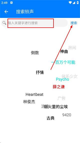 2、在搜索鈴聲頁面,輸入要下載的鈴聲,點(diǎn)擊搜索按鈕。