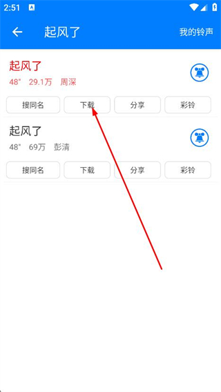 3、選擇需要的鈴聲,點(diǎn)擊下載,即可完成鈴聲下載操作。