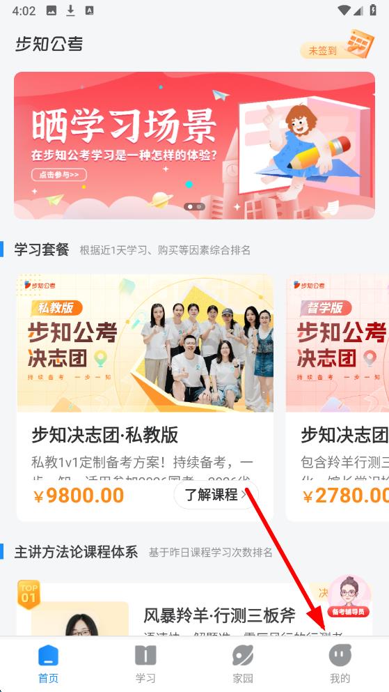 1、打開步知公考APP點擊底部導航欄中我的選項,進入個人相關界面。