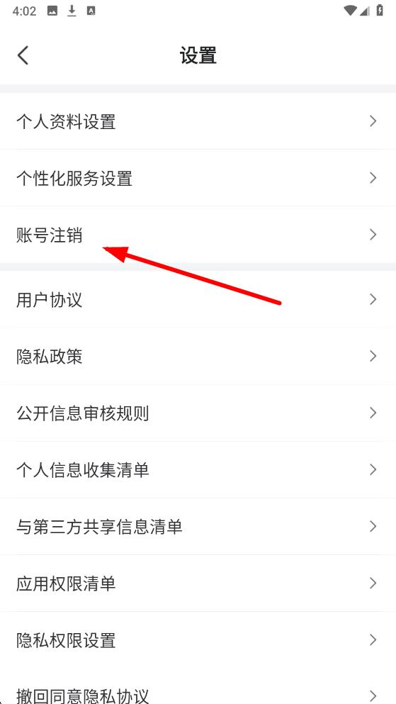 3、在設置頁面里找到并點擊賬號注銷的選項,然后按照頁面提示完成后續(xù)的注銷操作。