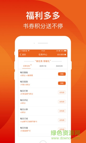 - 每日簽到打卡:簽到還能得書券,免費閱讀就是這么簡單;