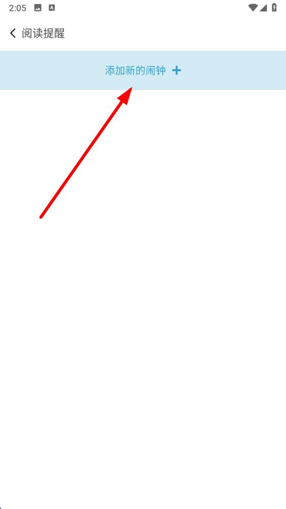 3、在閱讀提醒設(shè)置頁(yè)面,點(diǎn)擊添加新的鬧鐘選項(xiàng)。
