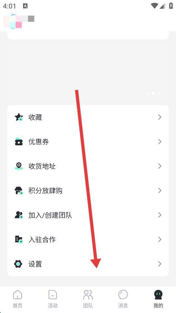 2、在個人頁面下滑,找到并點擊設(shè)置選項。