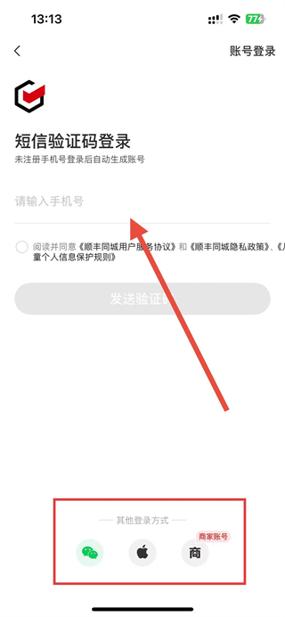 2、在登錄頁面,可以選擇手機(jī)號驗(yàn)證登錄,也可以通過下方的登錄方式。