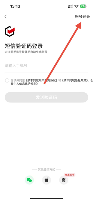 3、若要選擇賬號密碼登錄,點(diǎn)擊右上角賬號登錄,可切換登錄方式。