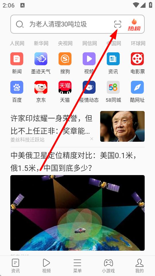 2、在首頁(yè)搜索欄的右側(cè),點(diǎn)擊掃碼圖標(biāo)。