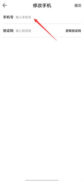 4、在修改手機(jī)頁(yè)面,在手機(jī)號(hào)輸入框中輸入要綁定的手機(jī)號(hào),然后點(diǎn)擊獲取驗(yàn)證碼,輸入收到的驗(yàn)證碼后,點(diǎn)擊提交即可完成手機(jī)號(hào)綁定。