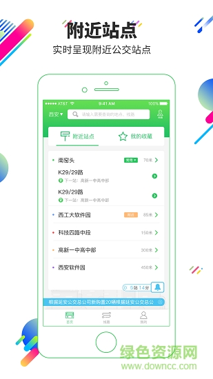 自動定位當(dāng)前位置。呈現(xiàn)你附近站點(diǎn)和線路信息“易公交”截圖