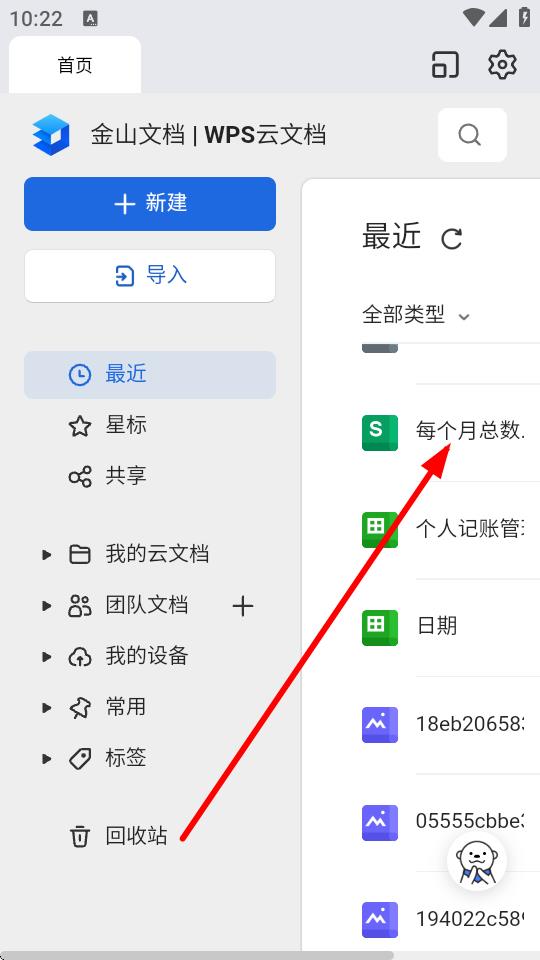 1、打開金山文檔App進入首頁,在最近列表中點擊要分享的文件進入編輯界面。