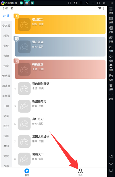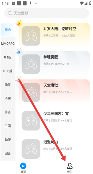 1、首先打開游戲盒子,進(jìn)入軟件后點(diǎn)擊界面右下角【我的】;