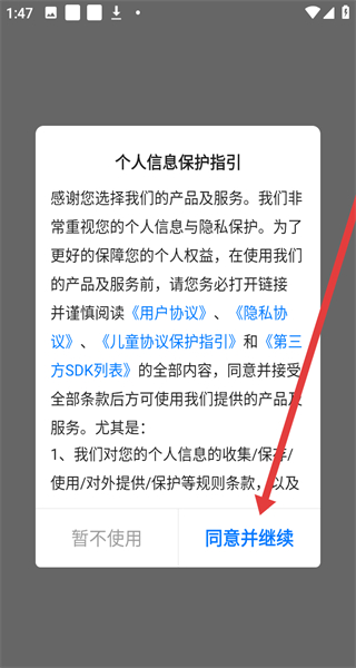 1、點(diǎn)擊“個(gè)人信息保護(hù)指引”彈窗的“同意并繼續(xù)”,進(jìn)入游戲盒首頁。