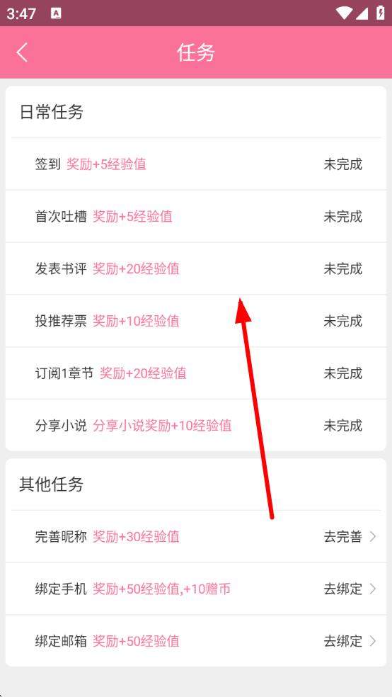 3、在任務界面的日常任務欄下,找到簽到任務,點擊其對應的簽到區(qū)域完成簽到,還能獲取 +5經(jīng)驗值獎勵。