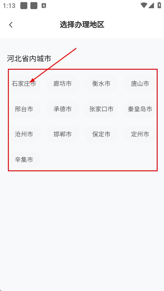3、在選擇辦理地區(qū)頁面,選擇你需要辦理生育登記的地區(qū)。