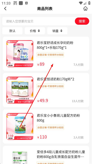 3、在商品列表頁面選擇目標(biāo)奶粉,點(diǎn)擊進(jìn)入商品詳情頁面。