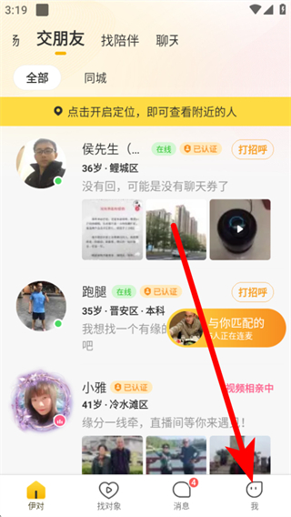 1、打開伊對(duì)應(yīng)用,點(diǎn)擊底部導(dǎo)航欄的我選項(xiàng)。