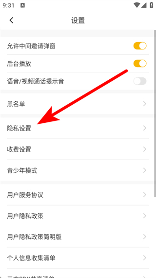 2、在設(shè)置頁(yè)面中找到隱私設(shè)置選項(xiàng)并點(diǎn)擊,進(jìn)入隱私設(shè)置頁(yè)面。
