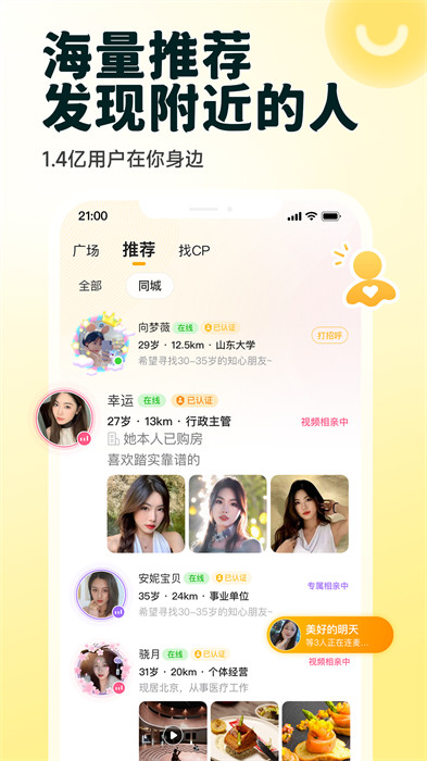 全新的導(dǎo)航結(jié)構(gòu),為你推薦百里挑一的俊男美女,讓戀愛變得簡(jiǎn)簡(jiǎn)單單;