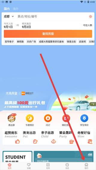 1、在木鳥民宿app首頁中,點(diǎn)擊底部的我的按鈕可進(jìn)入到我的主頁。
